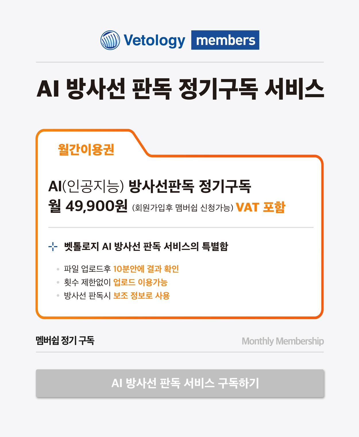 AI 방사선 판독서비스 멤버쉽 구독하기(VAT 포함)_벳아너스 회원 전용 할인 구독